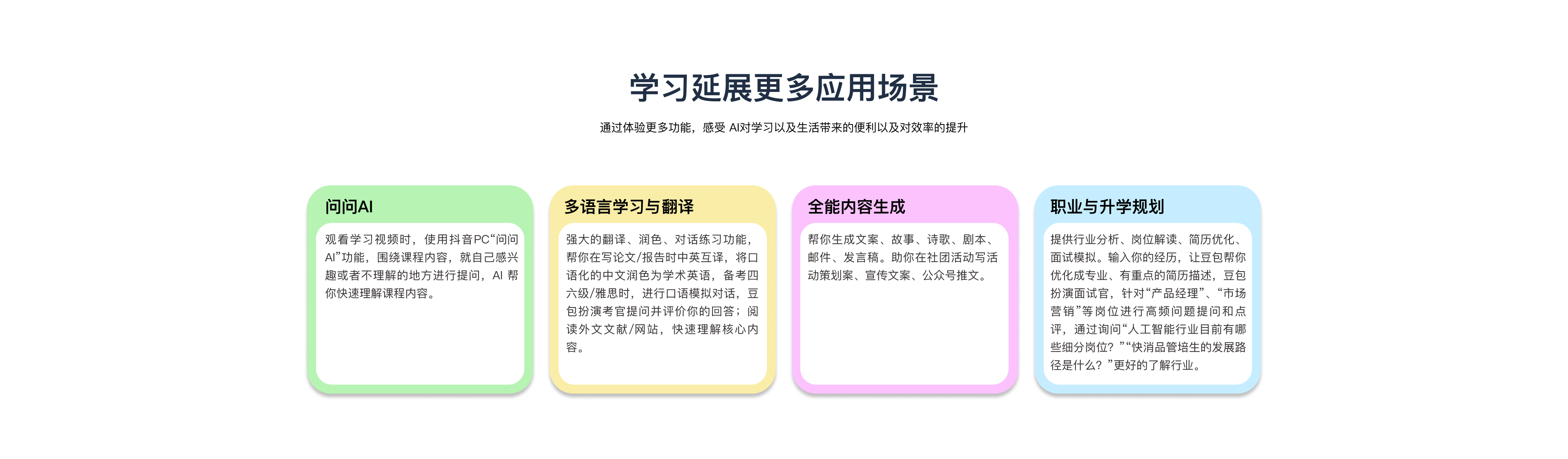 大学生在活动页面点击下载安装抖音pc端后,学习视频课程, 并可通过抖音pc端特有的AI功能提取课程笔记